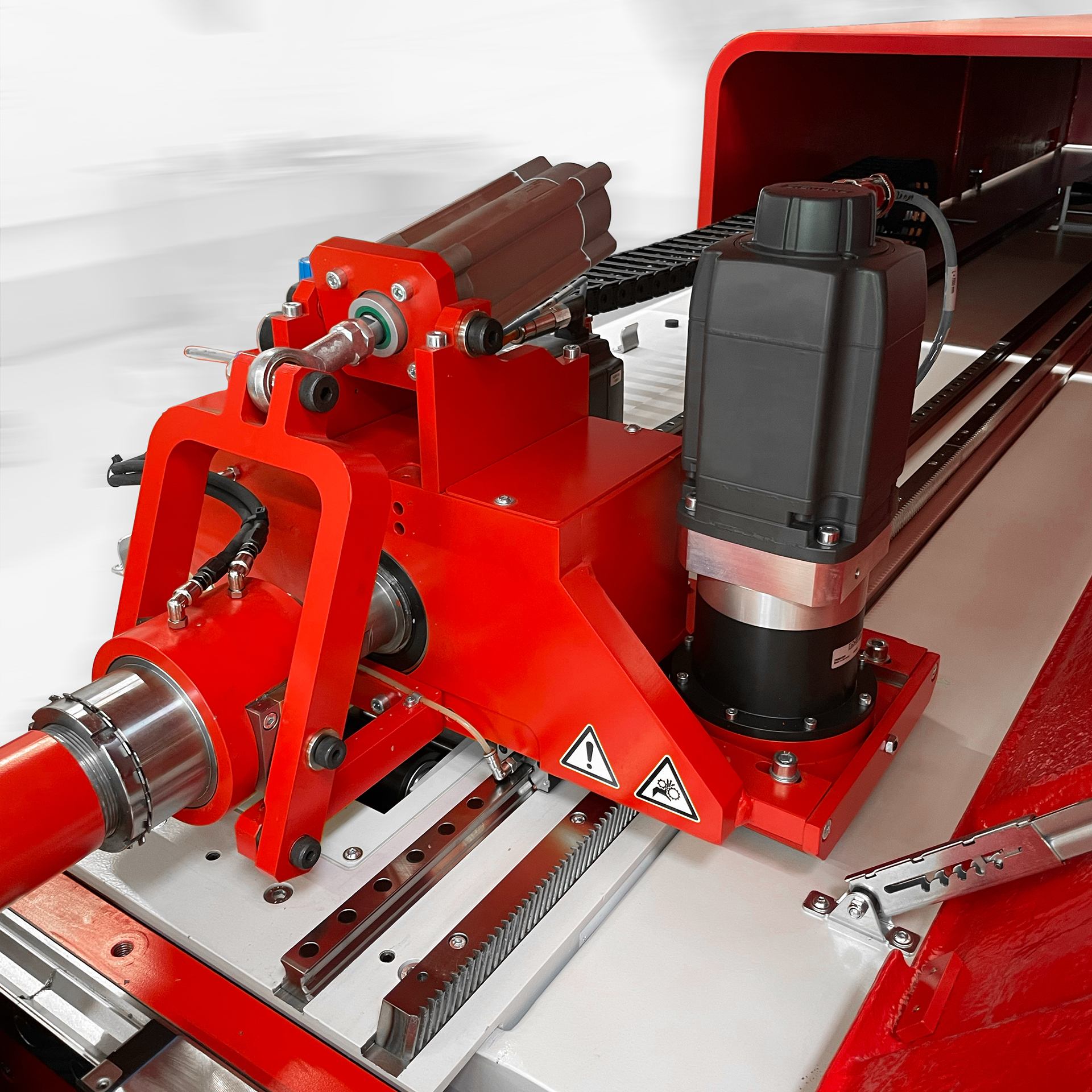 We offer a variety of loading systems for all machines, depending on the material, tube diameter and tube length. Even tubes that have already been formed with attachments can be loaded without any problems. Correct alignment is very important when feeding the tube into the production cell. External workpieces, such as nuts, flanges and support sleeves, can be fed into the system in a controlled manner and included in the subsequent processing steps. A wide range of loading volumes can be realized.